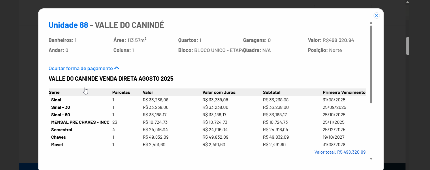 Clique em “Ver mais” nas unidades para acessar as condições e valores de pagamento em tempo real.